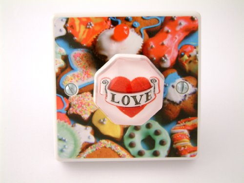 The Most Stylish Kitchen Dimmer Switch. Turn a Drab Light Switch Into A Great Feature! Light switches rarely evoke a strong reaction when it comes to style and design and often get overlooked but it's the small details that make a difference in a room. Candy Queen's totally unique handmade light switches are the perfect way to add the finishing touch to funky hallways, children's themed bedrooms, in fact, any room of your home or even the office! Why buy a Love heart light switch cover when you can exchange the whole light switch for one which will quite simply demand attention by all who enter the room. Simply turn the Love heart to the right to turn the light on and then back to the left and click off, you can choose to dim the lights or have them on full brightness. Full instructions are supplied with each switch, and installation takes a matter of minutes, it is not necessary to have a dimmer switch installed already to fit one of these funky customised versions. We lovingly make all of our light switches for you by hand in the UK in the Candy Queen workshop. When buying from Candy Queen you can be safe in the knowledge you are buying fantastic quality products and also supporting UK industries. We offer a 100% money back guarantee, if you're not happy with your order for any reason simply return it for a full refund. All our Amazon shop light switches are dimmer switches : 400 Watt, 1 gang, 1 Way as standard. Higher wattages, 2 way switches and on/off switches are available in all designs on our website candy queen designs. All designs are CE Stamped (conforms to health, environmental, and safety regulations). These are not flimsy light switch covers but fantastic quality, whole light switch units which can be fitted in minutes and make simply stunning replacements. Candy Queen products make fantastic, totally original gifts with a guaranteed 'WOW' factor! Unleash your inner designer, buy online today and add the finishing touch to your room within days.